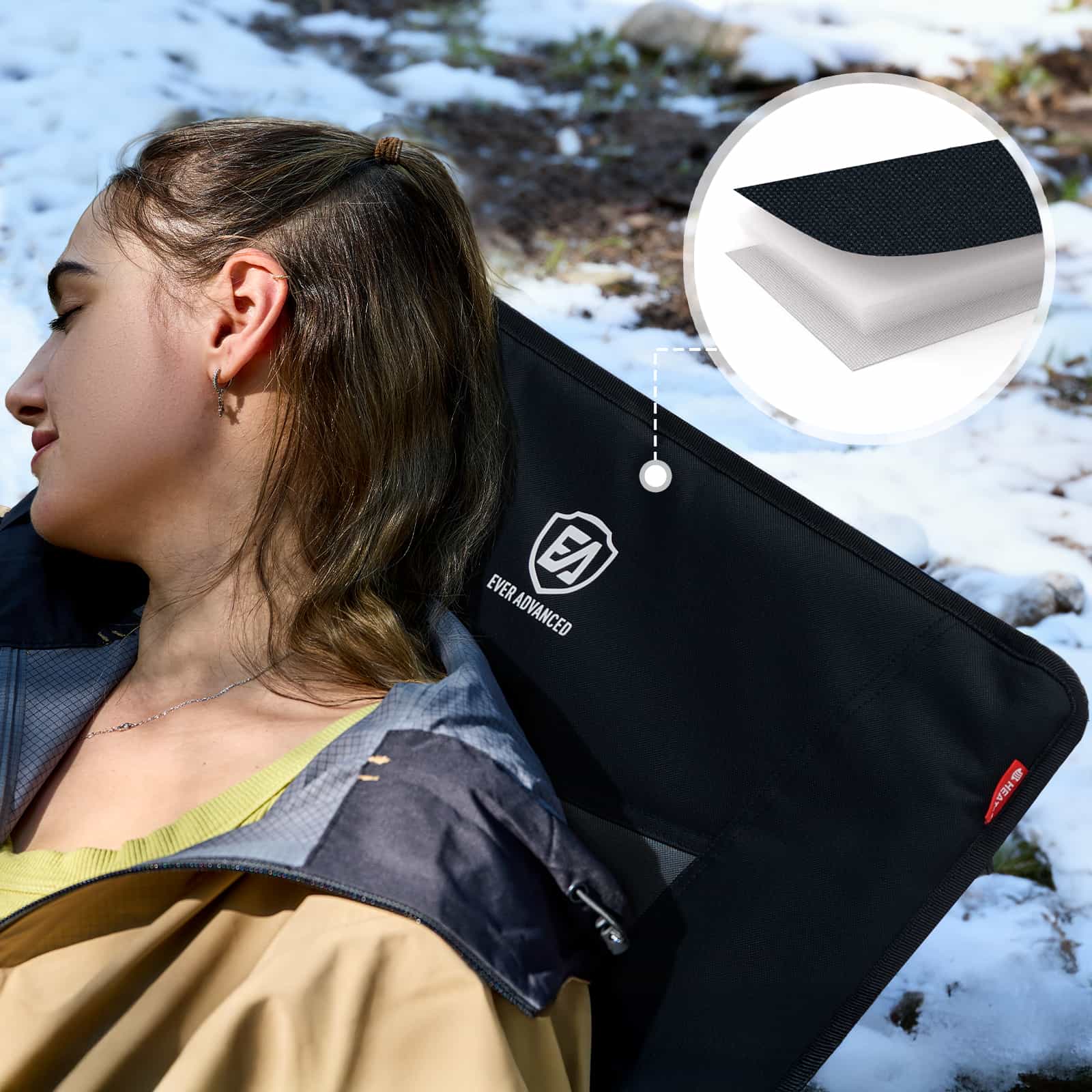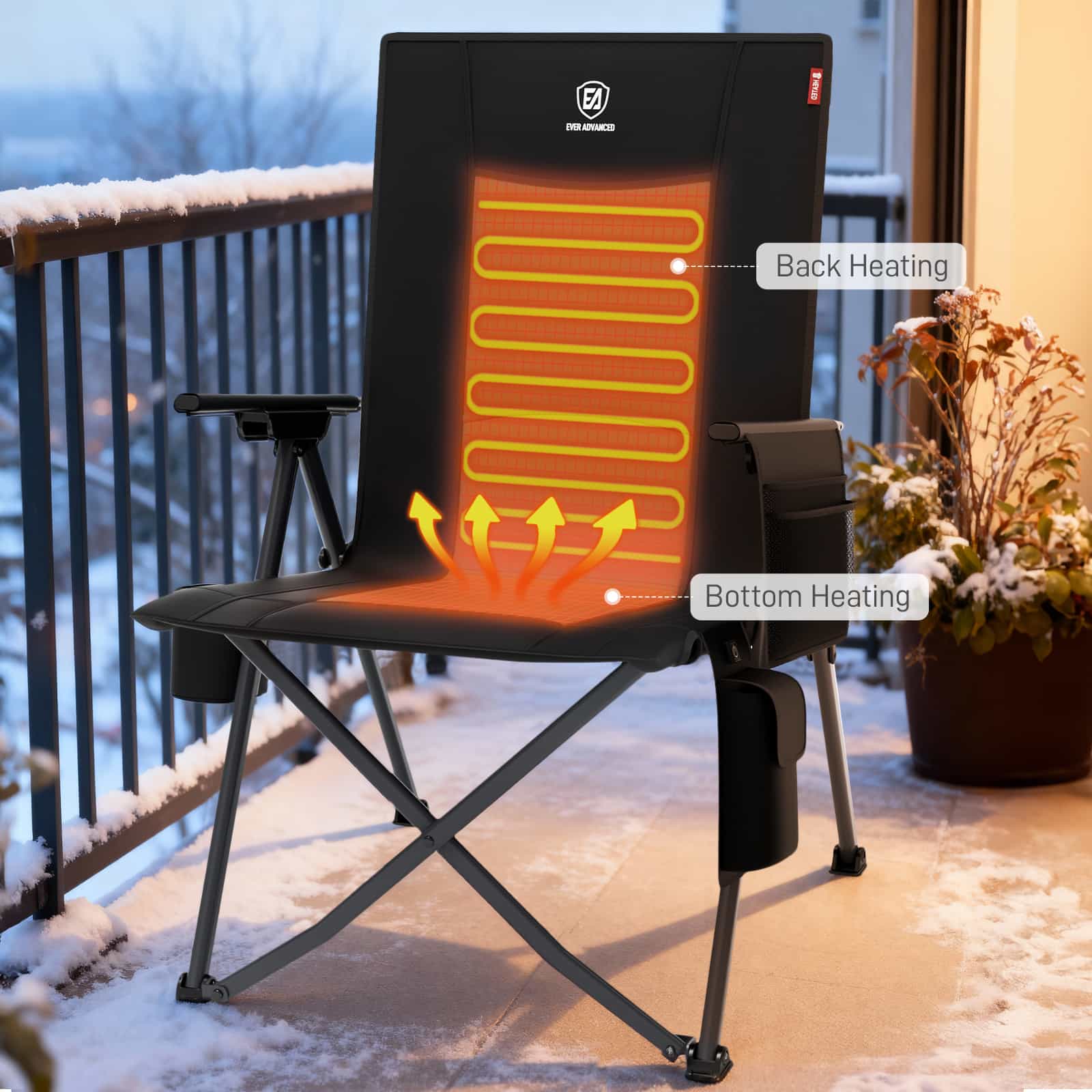 Thanks to 3 heating levels(122℉/ 113℉/ 104℉) design, EVER ADVANCED heated camping chair suits different environment and it can be easily adjusted, all you need to do is connecting the chair to a USB power bank and pressing button to switch. (USB power bank NOT included.)