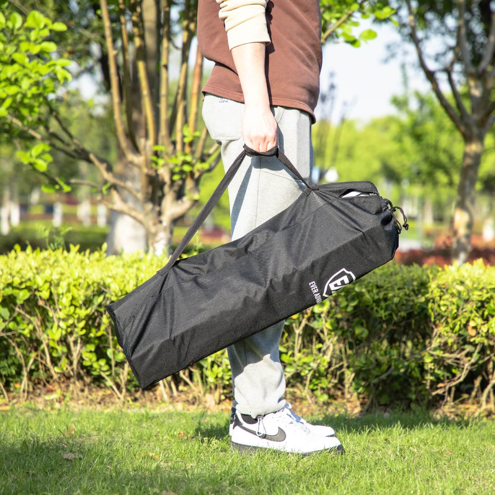 The roll-up camping table comes in a very nice, sturdy, and divided carrying bag for storage and transport, which has generous space for tables storing the disassembled table.