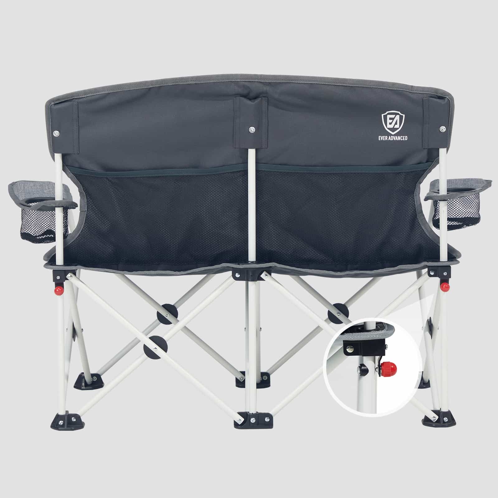 Heavy-duty steel frame wrapped in double-layer polyester securely holds 300 lbs. Spacious 30.7" width fits two kids playing or even one adult cuddling a child! Share storytime snacks or campfire moments on this double camping chair.