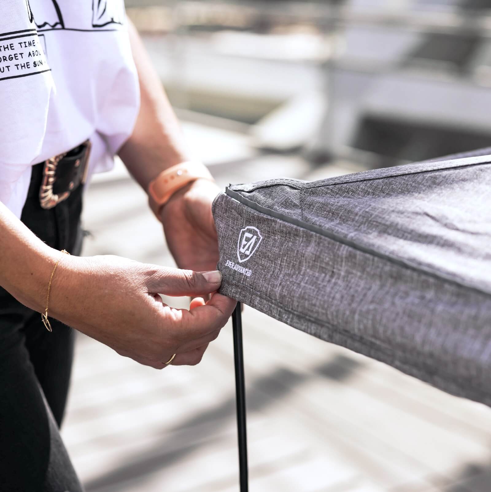 Four upgraded all-terrain PU wheels with an anti-shock system creates friction-free movement and a smooth ride. 360° rotating front wheels feature all-wheel suspension, so your travel stroller can handle any terrain with outstanding mobility for you.