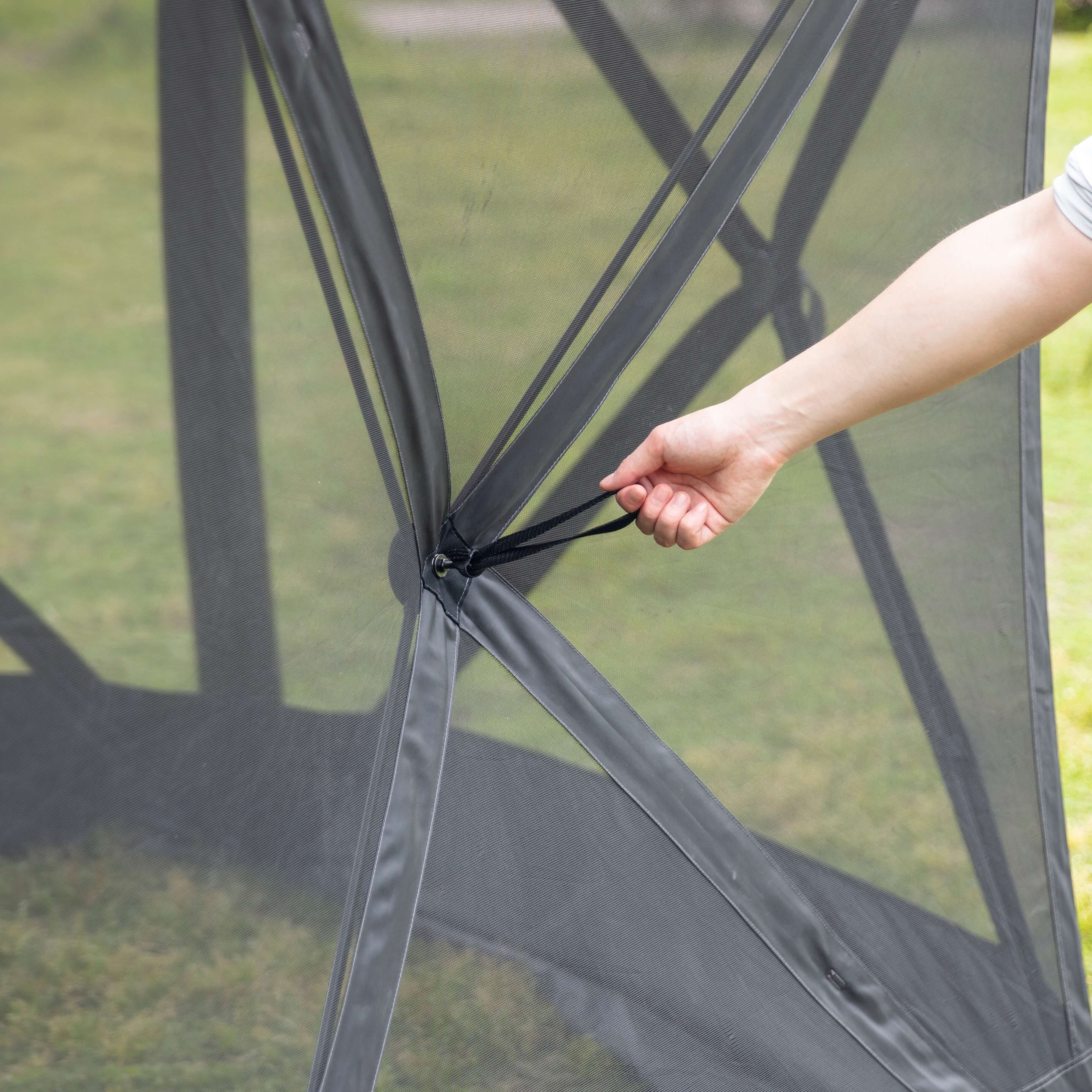 11.5 x 10 ft netting screen house room is big enough for 8 adults and camping equipment. 6 mesh panels provide ventilation and physical isolation in hot summer.