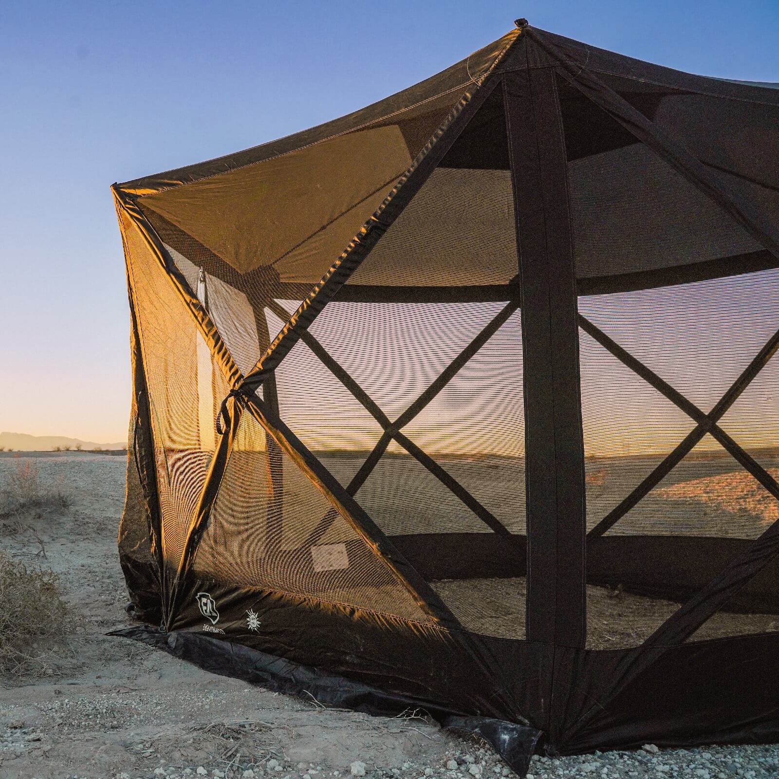 This thing is awesome. Easy to put up and down, lightweight but sturdy. We Luke to put it over our table when camping bur also use it at the lake for our own shade and easily fit 8+ camp chairs around the inside with room in the middle to put up snacks on a little folding table or store ice chests. Keeps out bugs and you can even hang a portable light from the center.