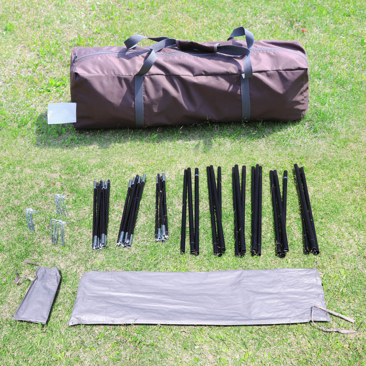 Screen tent frame is made of high-strength roof fiberglass poles and side steel poles. It will offer you a great sense of protection and security from external interference.