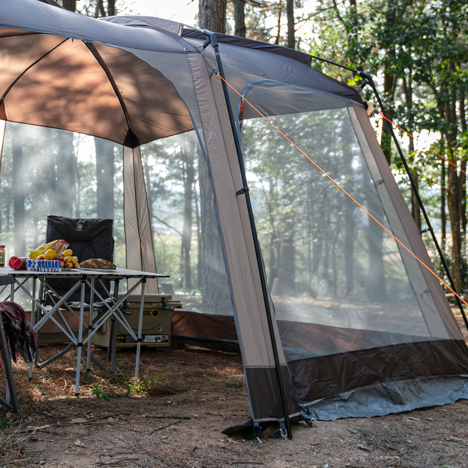 Portable screened canopy tent offers comfortably tall openings and two large entrance doors with double side zippers. 6 mesh wall panels ensure 360° ventilation for better dissipation of body heat. It also provides excellent views of the outdoors.