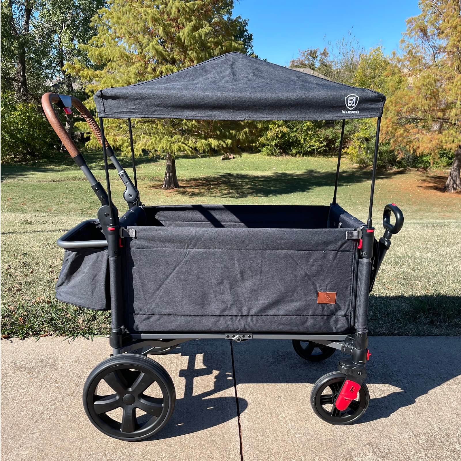 This wagon stroller unique side-opening feature converts the stroller into a restful bench, so your little one can relax in comfort and ease. Made with UPF 50+ fabric. MANUAL